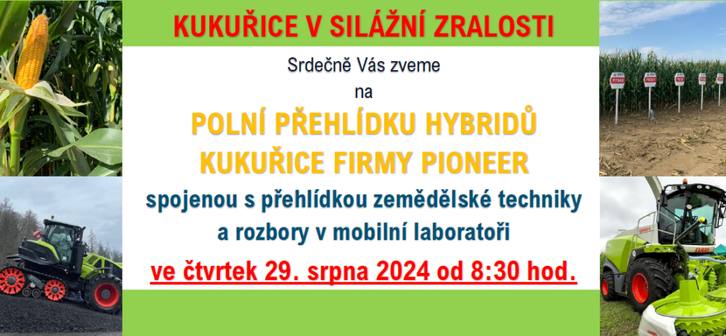 Zveme Vás na polní přehlídku hybridů kukuřice firmy Pioneer přineste si i rostliny kukuřic, zdarma Vám poskytneme rozbory silážní zralosti v mobilní laboratoři Pioneer KDY: 29. srpna 2024 od 8:30 hod. ...