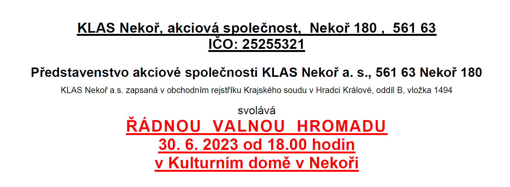 POZVÁNKA NA ŘÁDNOU VALNOU HROMADU