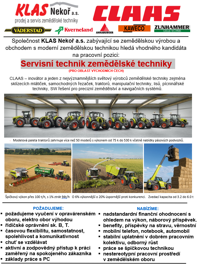 na adresu KLAS Nekoř a.s., Nekoř 180, 561 63 Nekoř pí Kašperová, tel. 602 444 951. Další případné